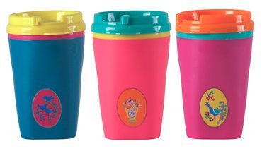 Plastic Thermo Latte Mug with Print in Assorted Colours